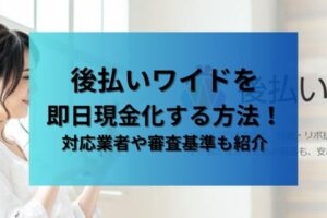 以下の記事では、後払いワイドの即日現金化方法や優良業者を紹介しています。