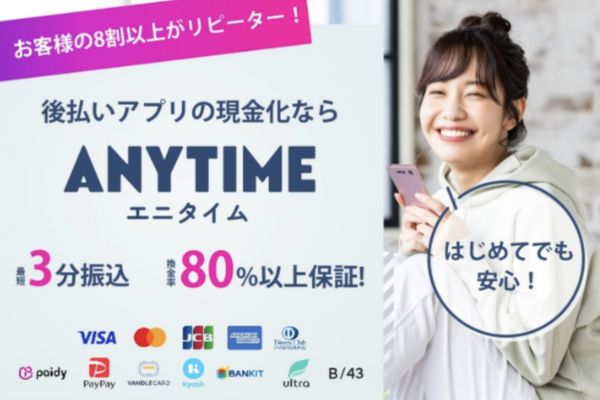 また、後払いアプリの現金化を検討している方には「エニタイム」もおすすめです。